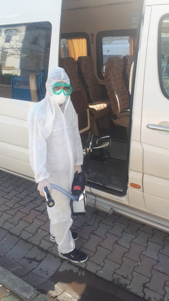 Kocaeli’de ev, hastane, otel, cami, restoran, kafe, ofis, yemekhane, otobüs, araç gibi kapalı veya açık her alanda profesyonel dezenfeksiyon hizmeti sunmaktayız. Dezenfeksiyon işlemi, soğuk sisleme cihazlarıyla, deneyimli teknisyenler tarafından Sağlık Bakanlığı onaylı biyosidal dezenfektanlar kullanılarak uygulanmaktadır.